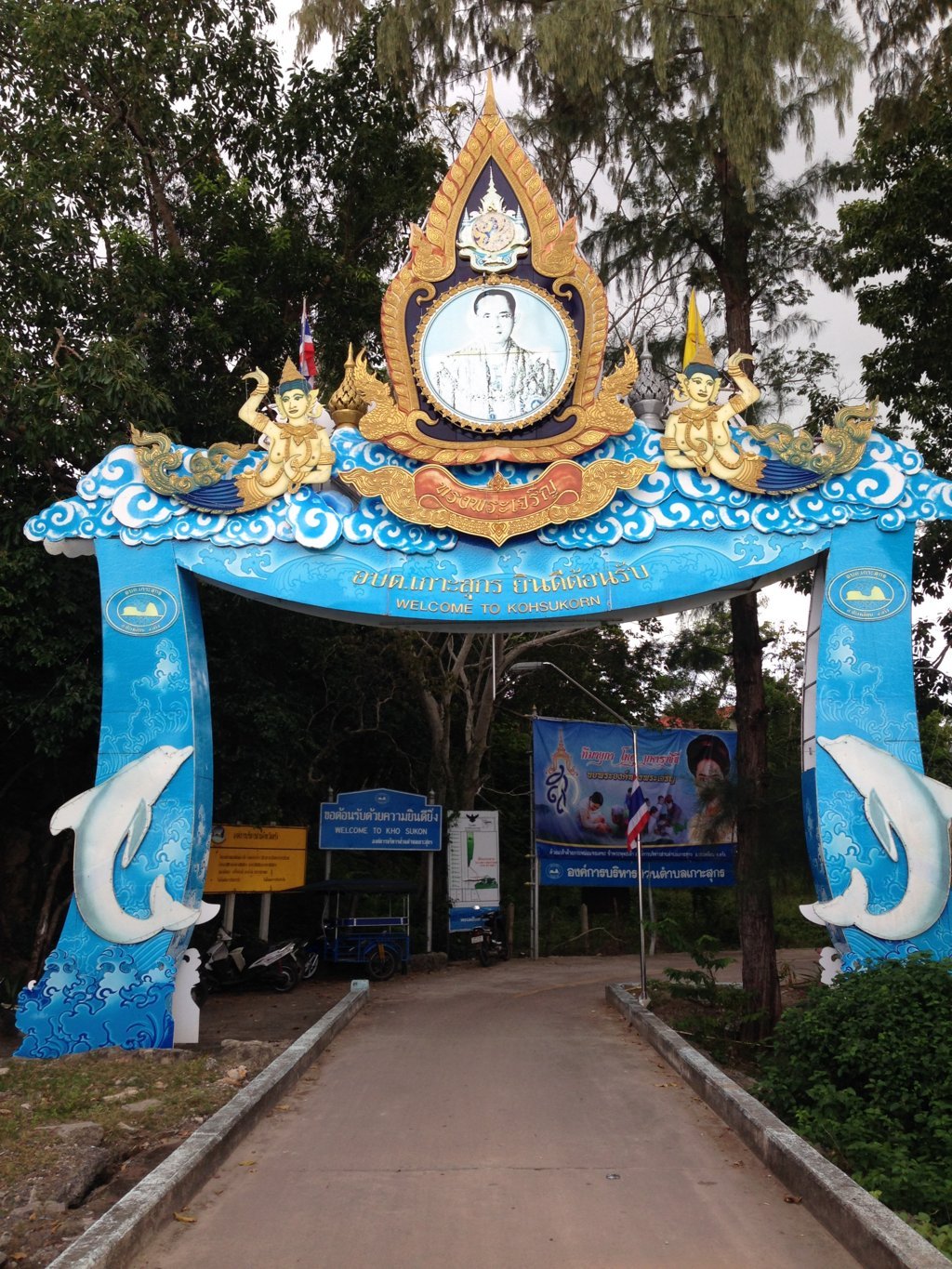 The view from the main pier to the entrance gate | | The entrance gate to the island (of course with a picture of the king) |